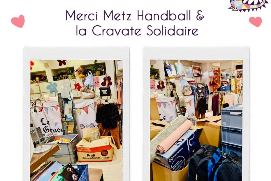 Juste avant les vacances nous avons reçu des supers dons de la part de Metz Handball et de La Cravate Solidaire MetzOn les remercie encore pour toutes ces merveilles, dont beaucoup ont déjà trouvé une nouvelle vie !… Collecte Partenaires !